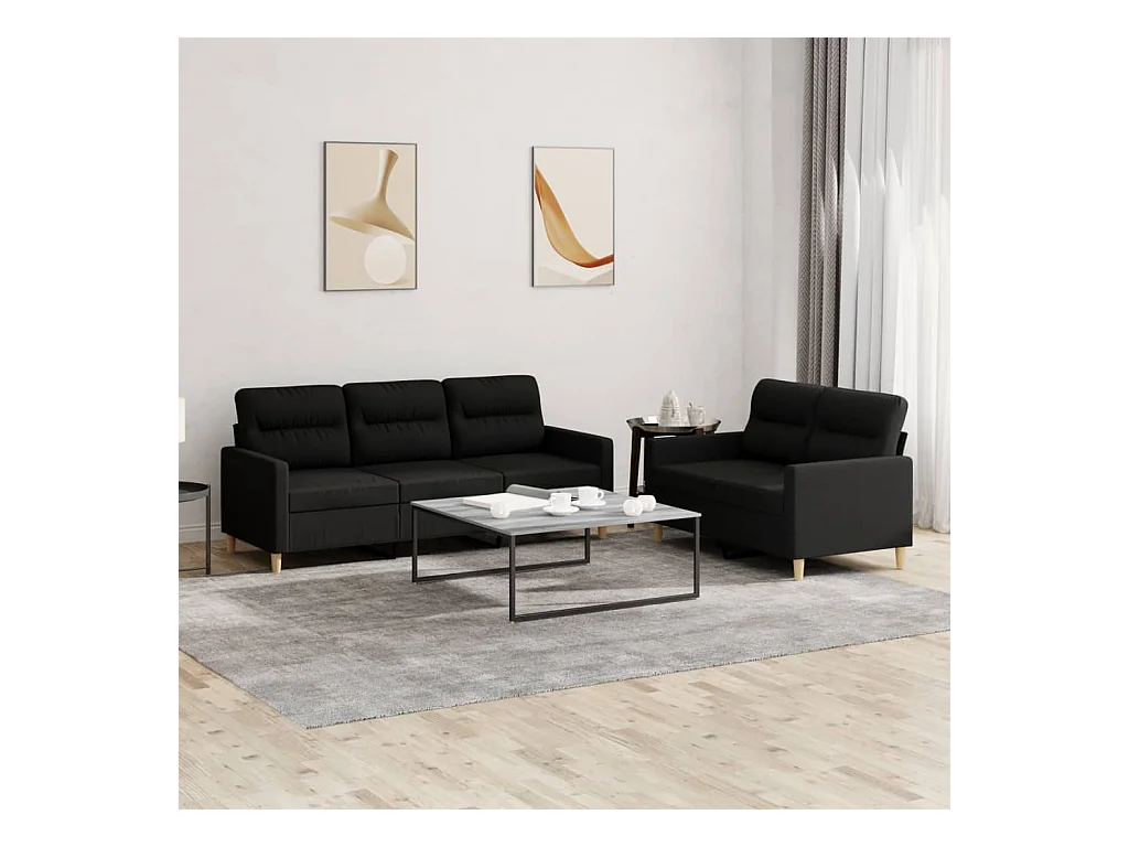 Ensemble de canapés 2 pièces avec coussins noir tissu