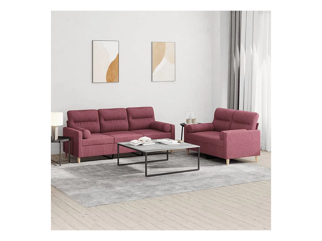 Ensemble de canapés 2 pièces avec coussins rouge bordeaux tissu