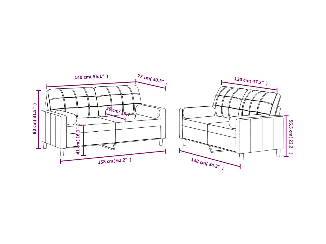 Ensemble de canapés 2 pièces avec coussins rouge bordeaux tissu