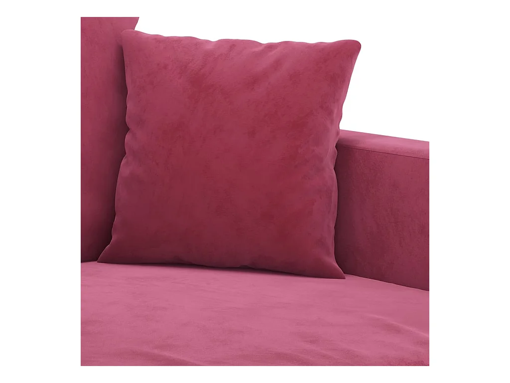 Ensemble de canapés 3 pièces avec coussins rouge bordeaux velours