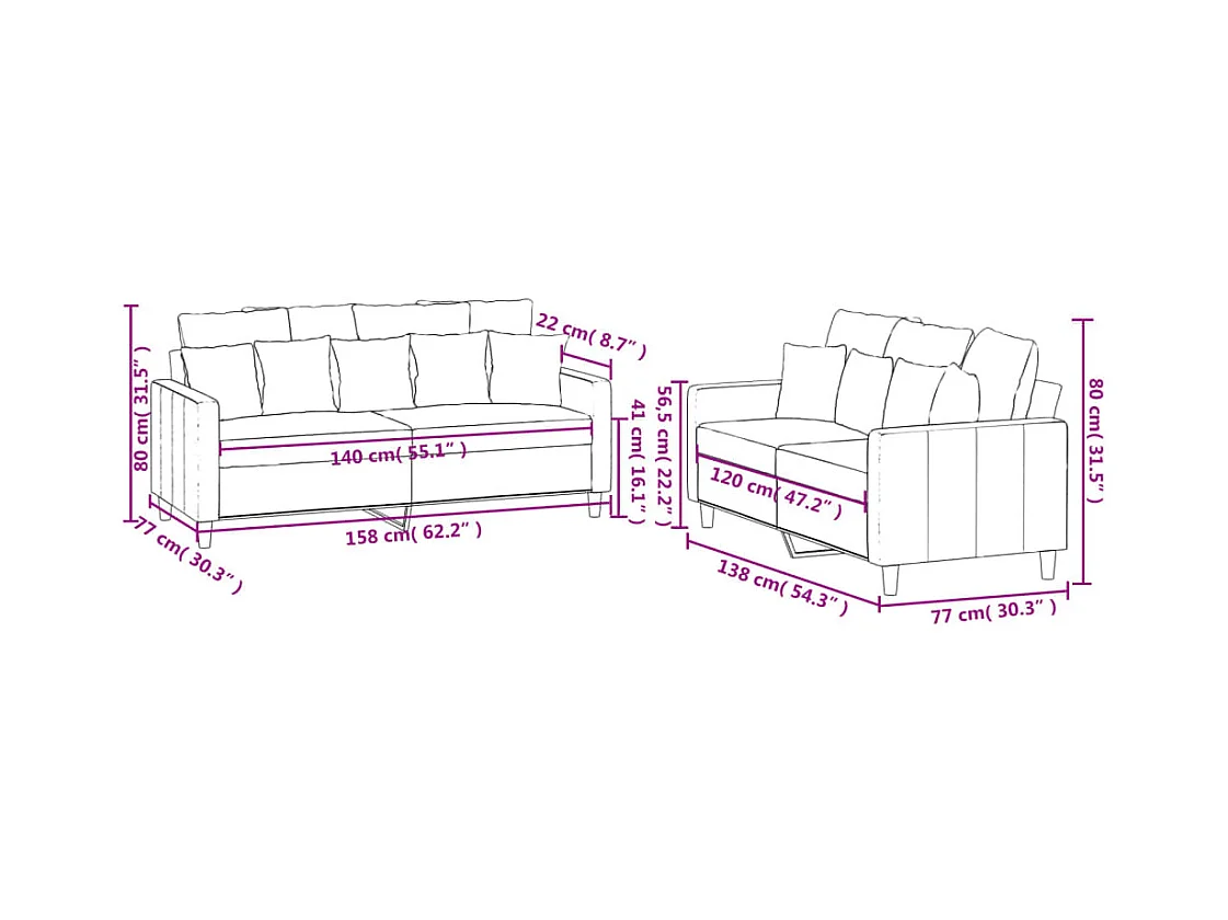 Ensemble de canapés 2 pièces rouge bordeaux velours