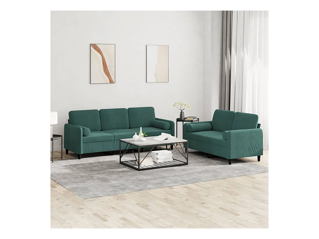 Ensemble de canapés 2 pièces avec coussins vert foncé velours