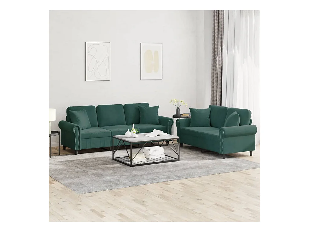Ensemble de canapés 2 pièces avec coussins vert foncé velours