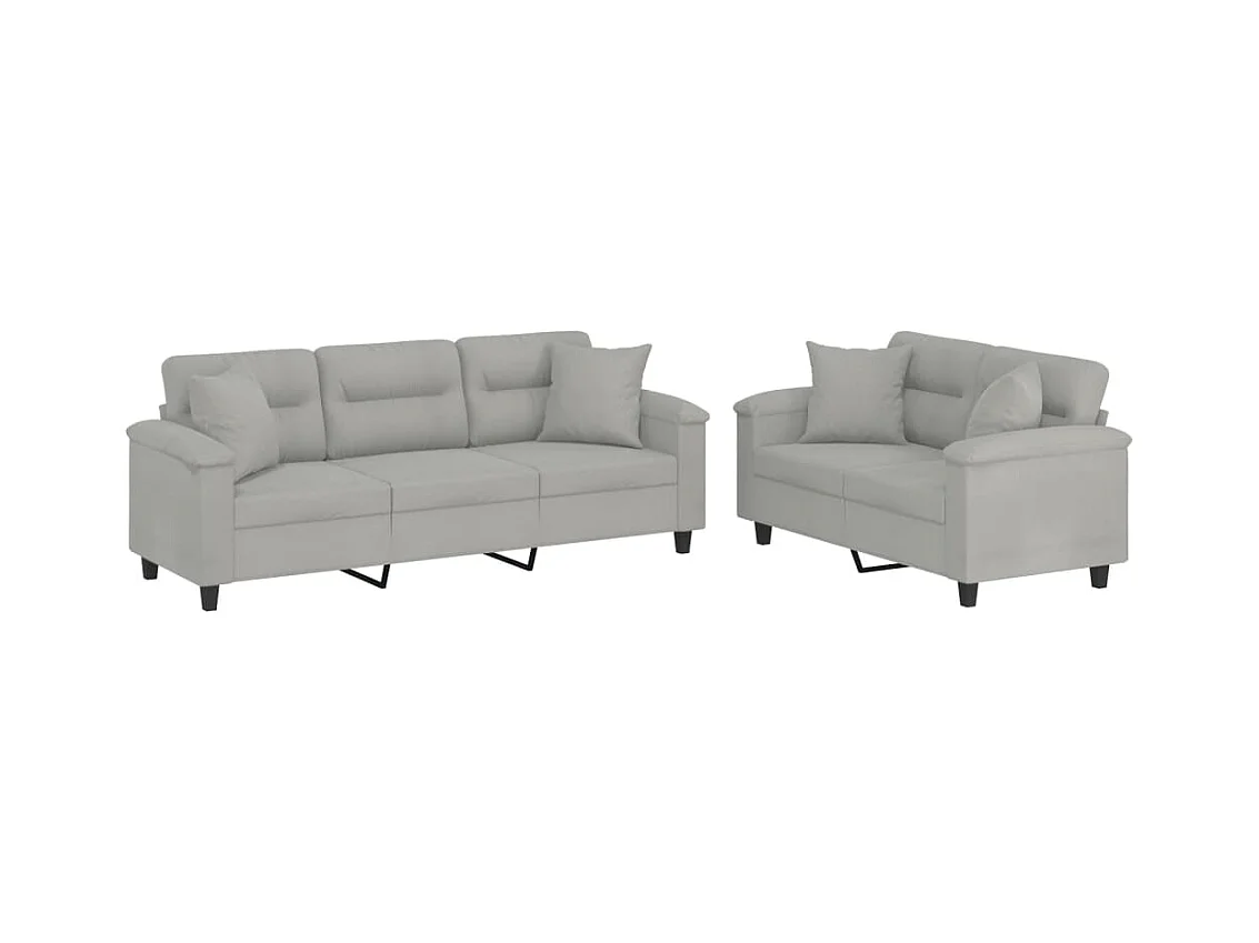 Ensemble de canapés 2 pièces coussins gris clair tissu microfibre