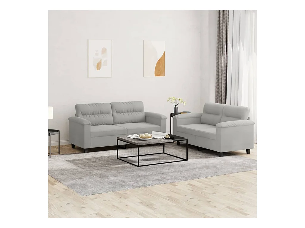 Ensemble de canapés 2 pièces coussins gris clair tissu microfibre