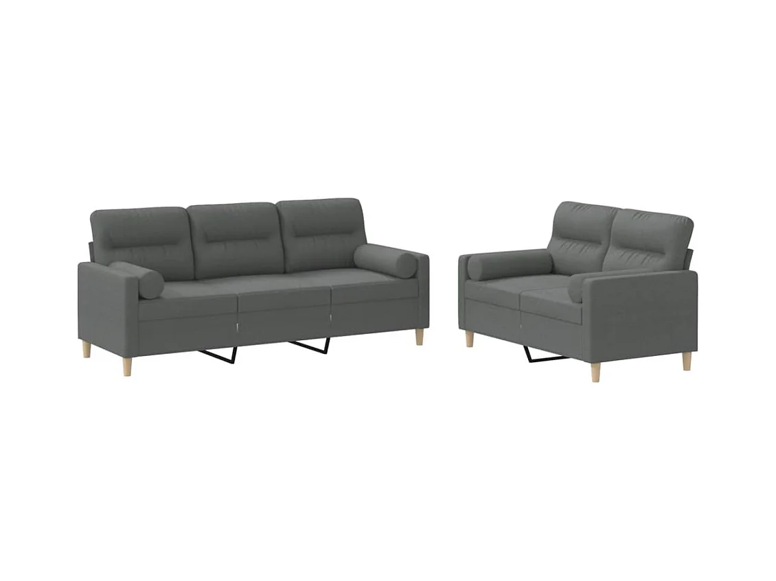 Ensemble de canapés 2 pièces coussins gris foncé tissu