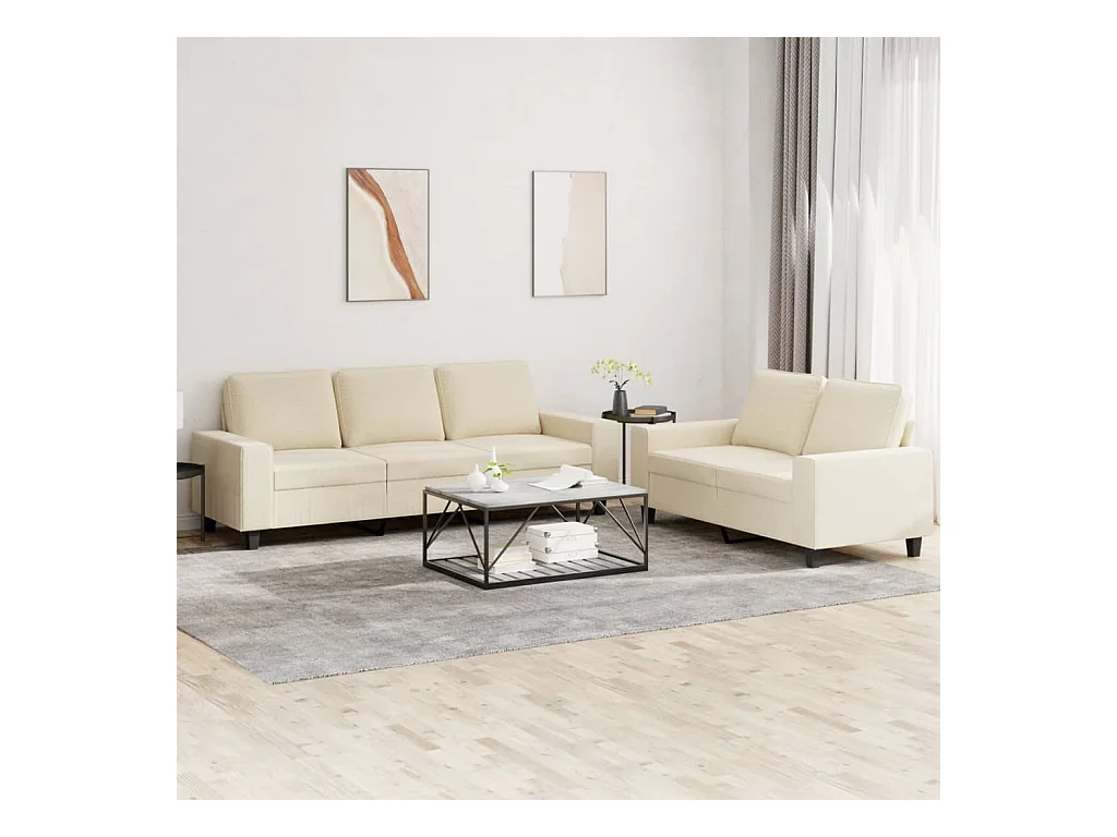 Ensemble de canapés 2 pièces avec coussins Crème Tissu