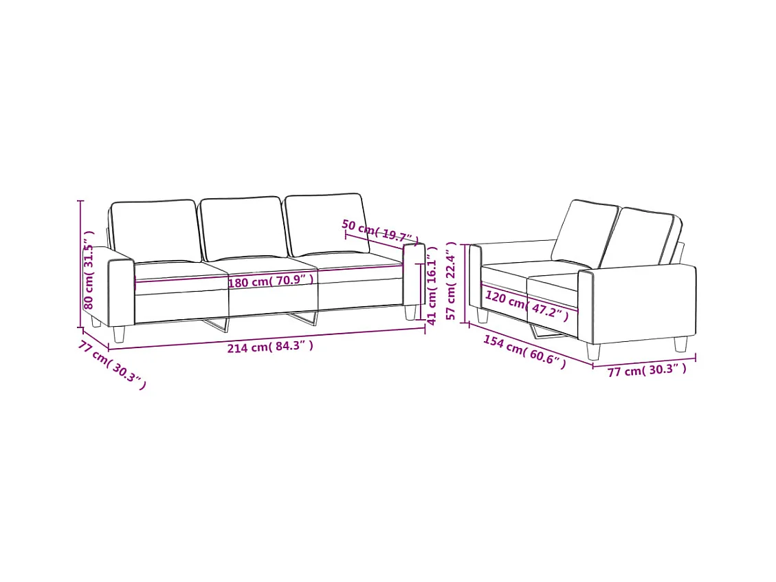 Ensemble de canapés 2 pièces avec coussins décoratifs crème tissu