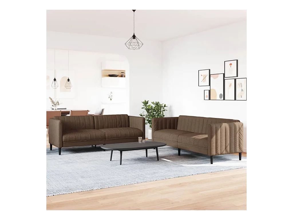 Ensemble de canapés 2 pièces avec coussins marron tissu