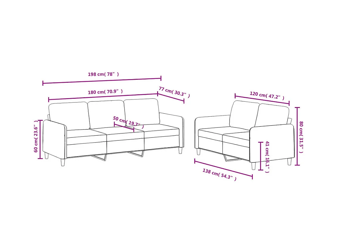 Ensemble de canapés 2 pièces avec coussins rose velours