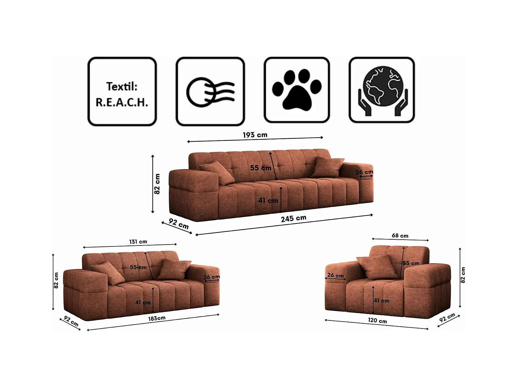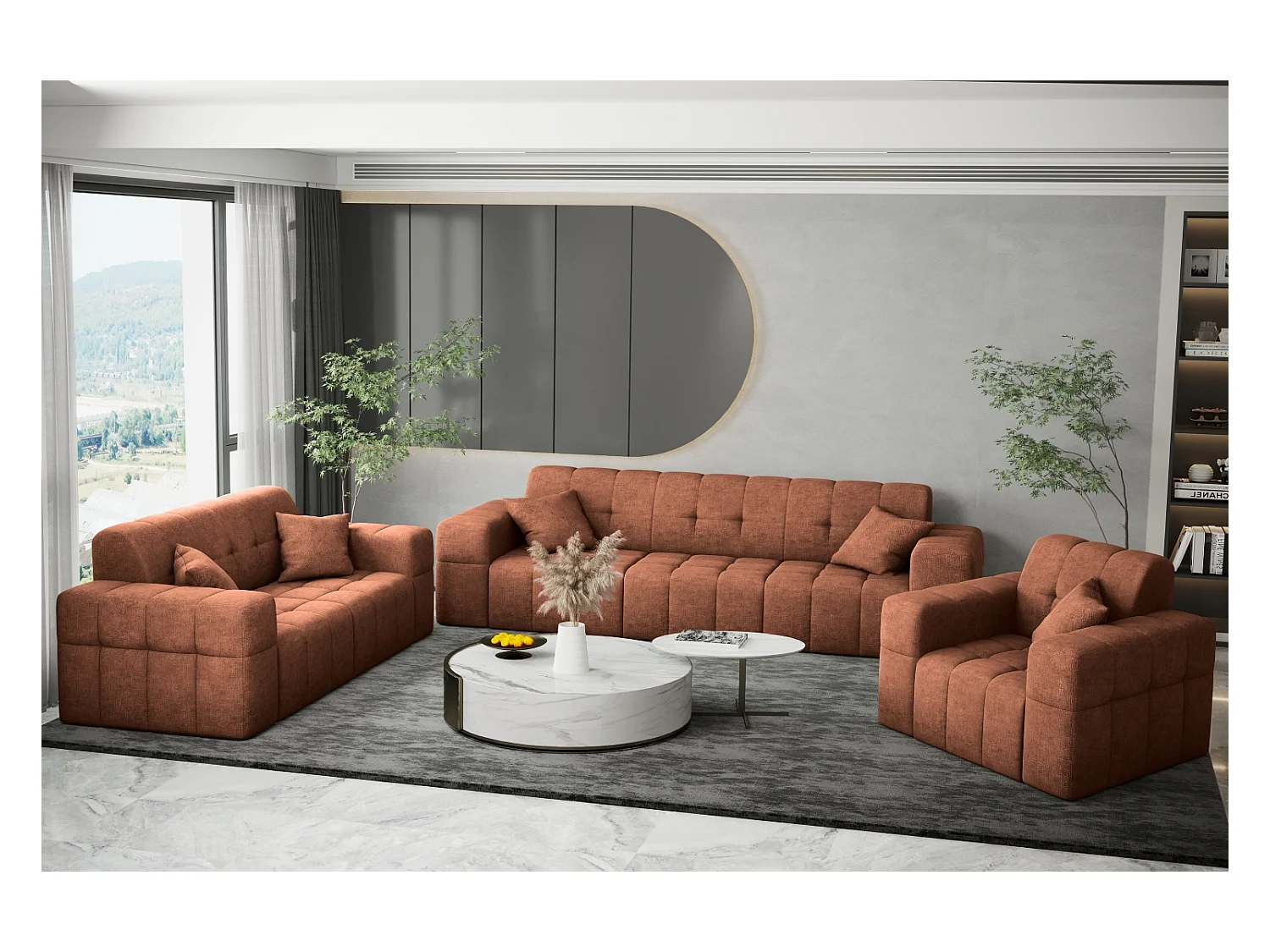 Ensemble de canapés 3+2+1 série NIMES tissu élégant Perfect Harmony Copper