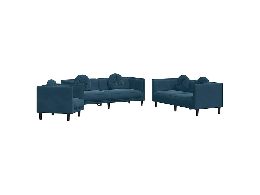 Ensemble de canapés 3 pcs avec coussins bleu velours
