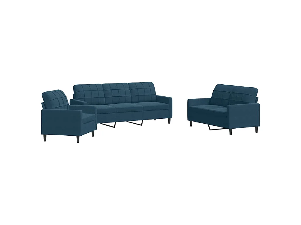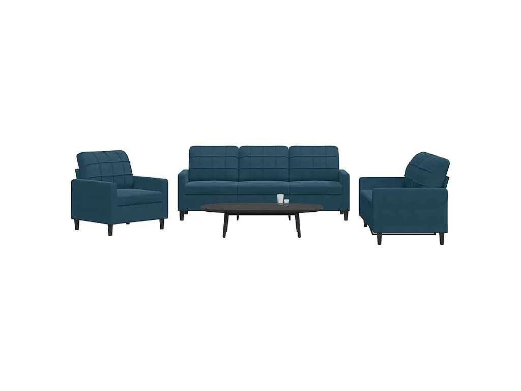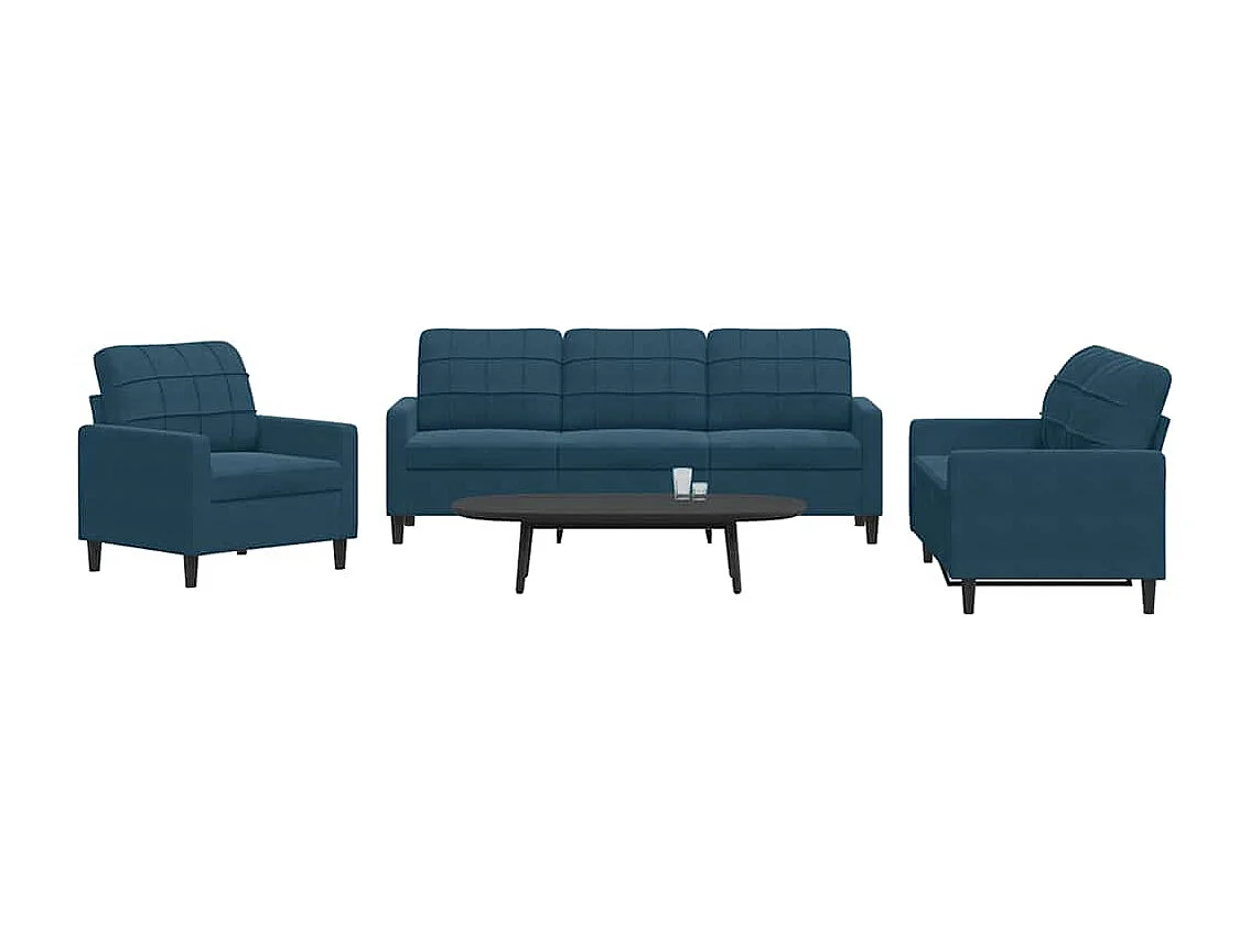 Ensemble de canapés 3 pcs avec coussins Bleu Velours