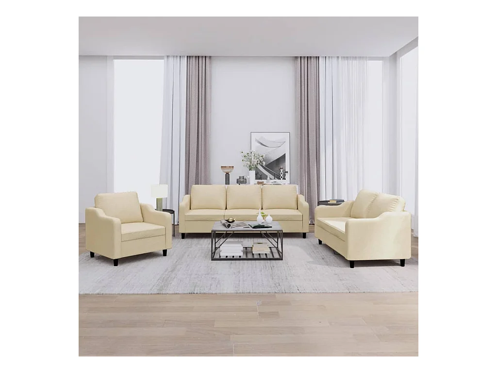 Ensemble de canapés 3 pcs avec coussins crème tissu