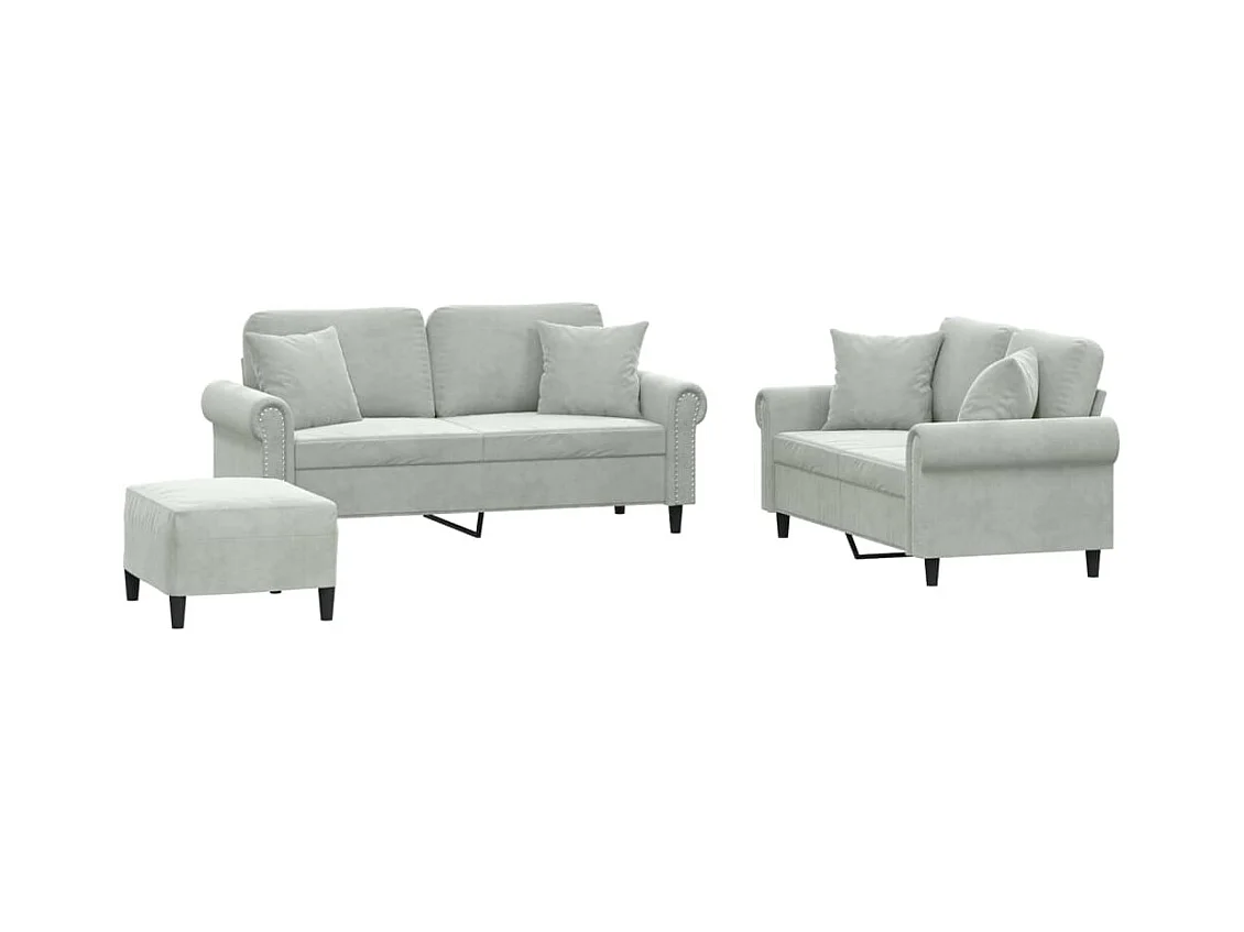 Ensemble de canapés 3 pcs avec coussins gris clair velours REO91815
