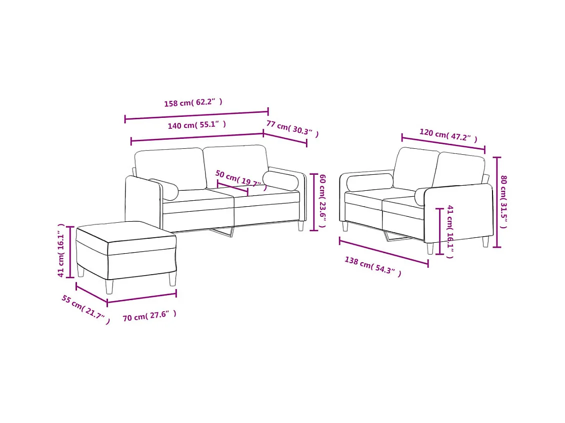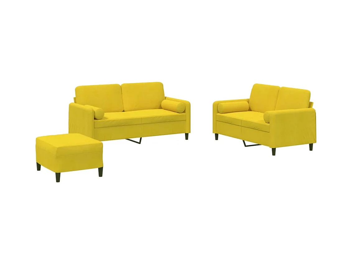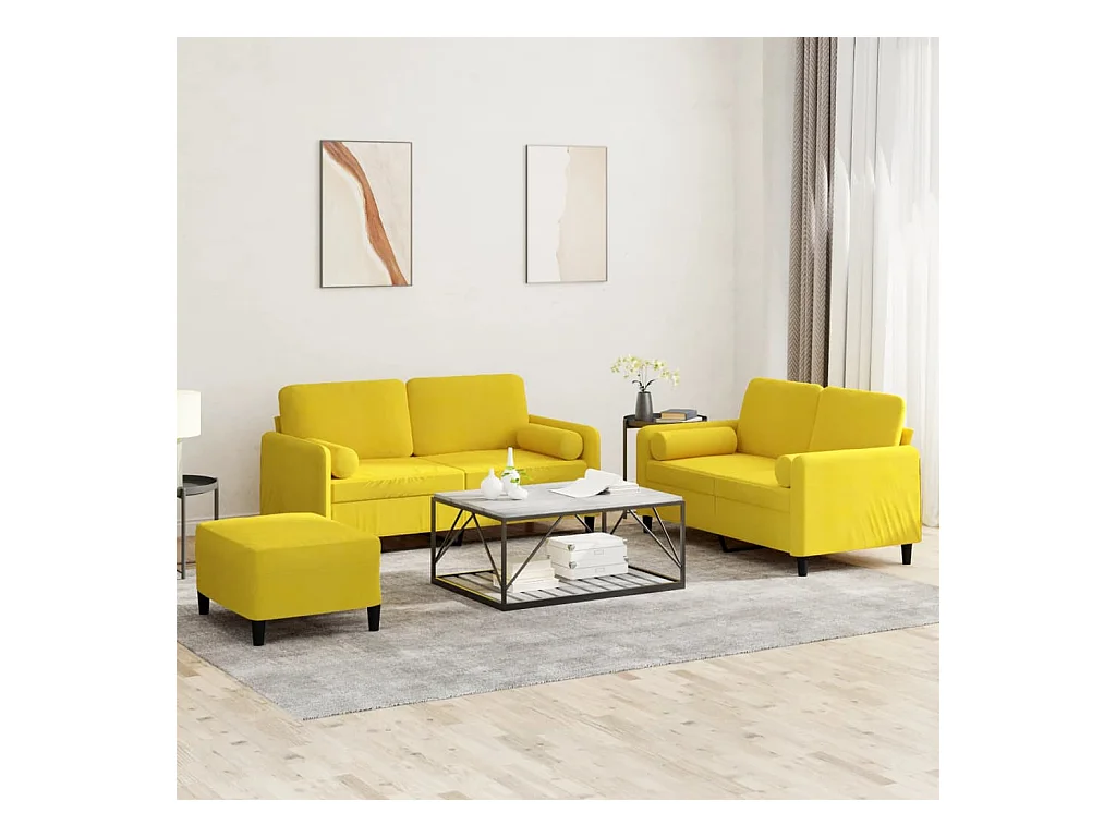Ensemble de canapés 3 pcs avec coussins jaune velours