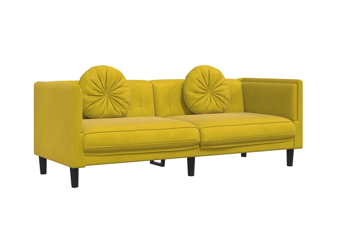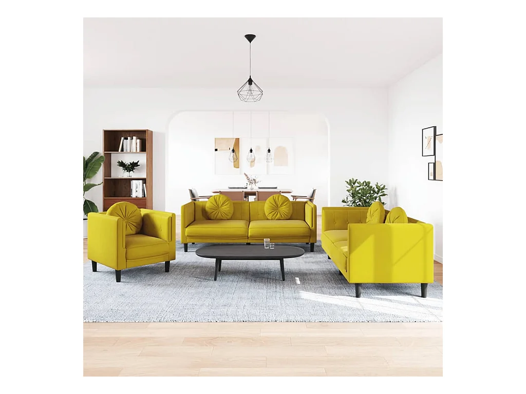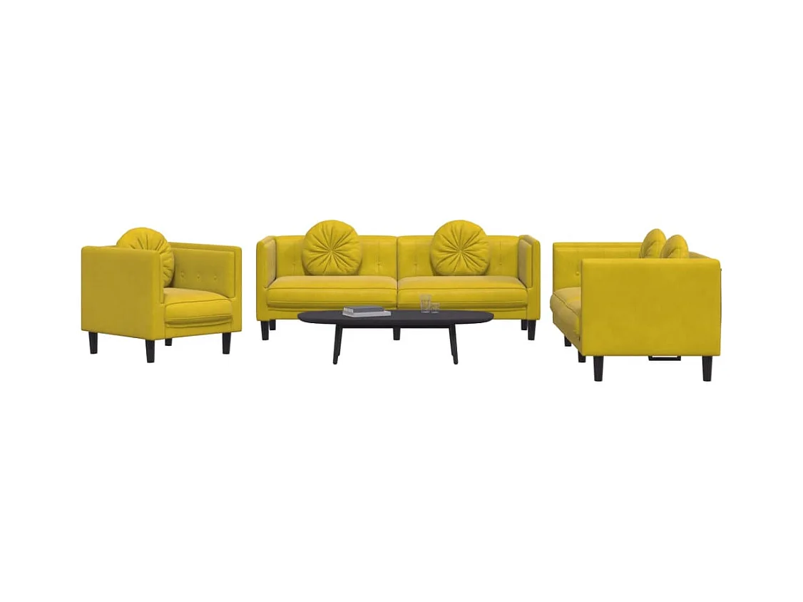Ensemble de canapés 3 pcs avec coussins jaune velours