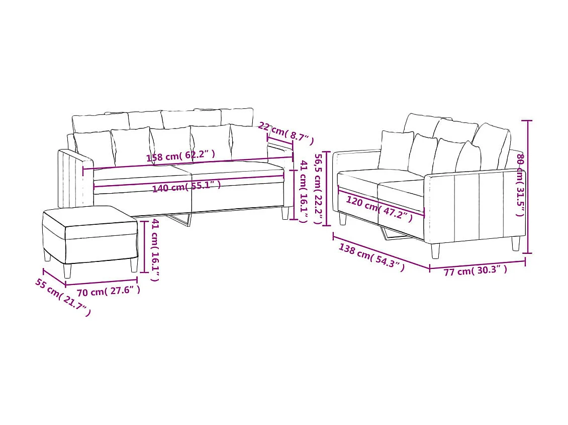 Ensemble de canapés 3pcs et coussins et traversins rose velours