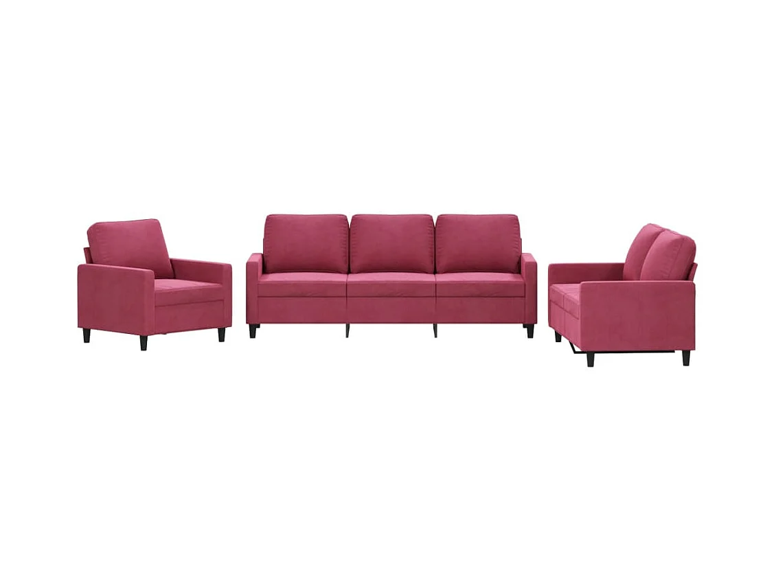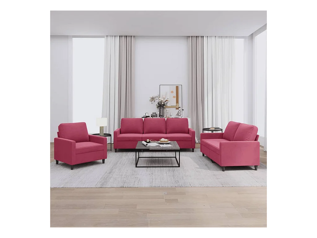 Ensemble de canapés 3 pcs rouge bordeaux velours