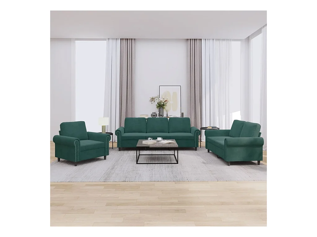 Ensemble de canapés 3 pcs avec coussins Vert foncé Velours