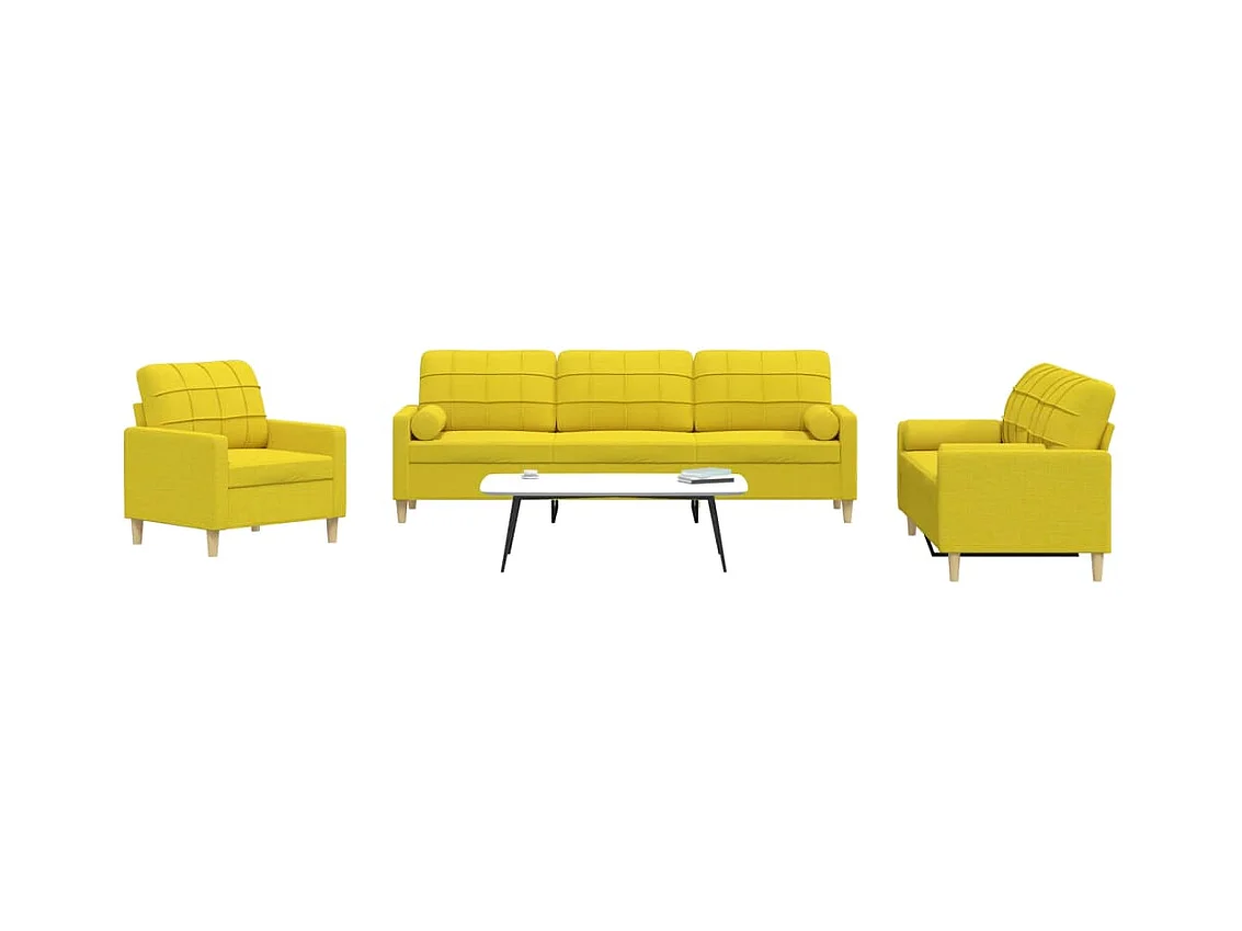 Ensemble de canapés 3 pcs coussins décoratifs jaune clair tissu