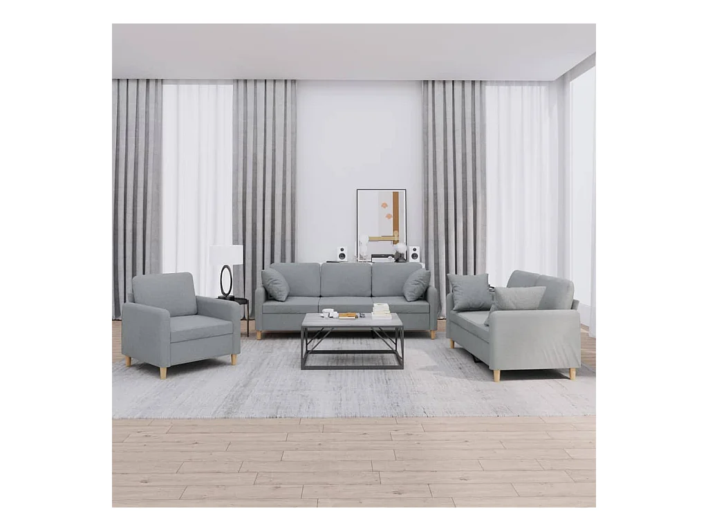 Ensemble de canapés 3 pcs avec coussins Gris clair Tissu