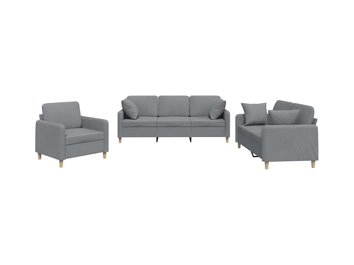 Ensemble de canapés 3 pcs coussins gris clair tissu