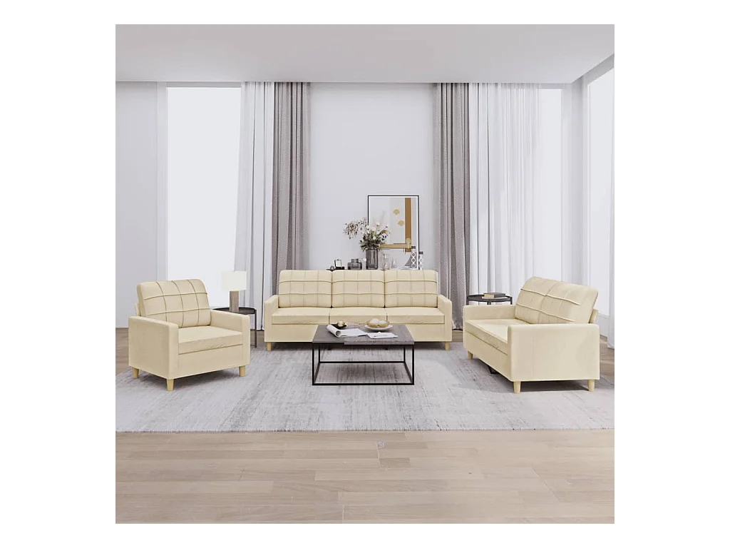 Ensemble de canapés 3 pièces avec coussins crème tissu