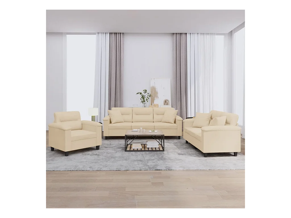 Ensemble de canapés 3 pièces avec coussins crème tissu microfibre
