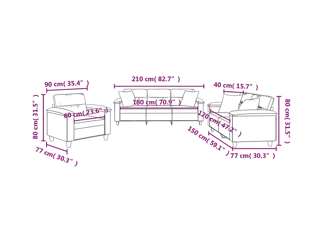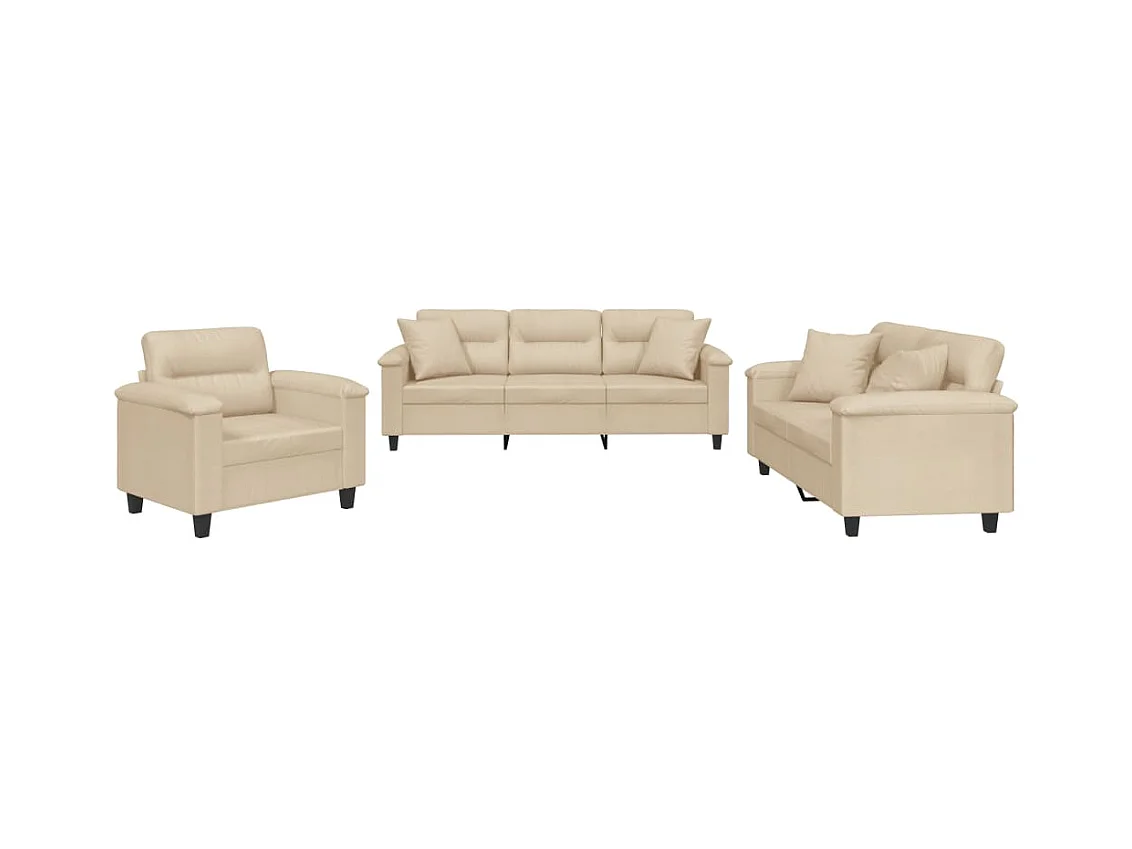 Ensemble de canapés 3 pièces avec coussins beige tissu microfibre