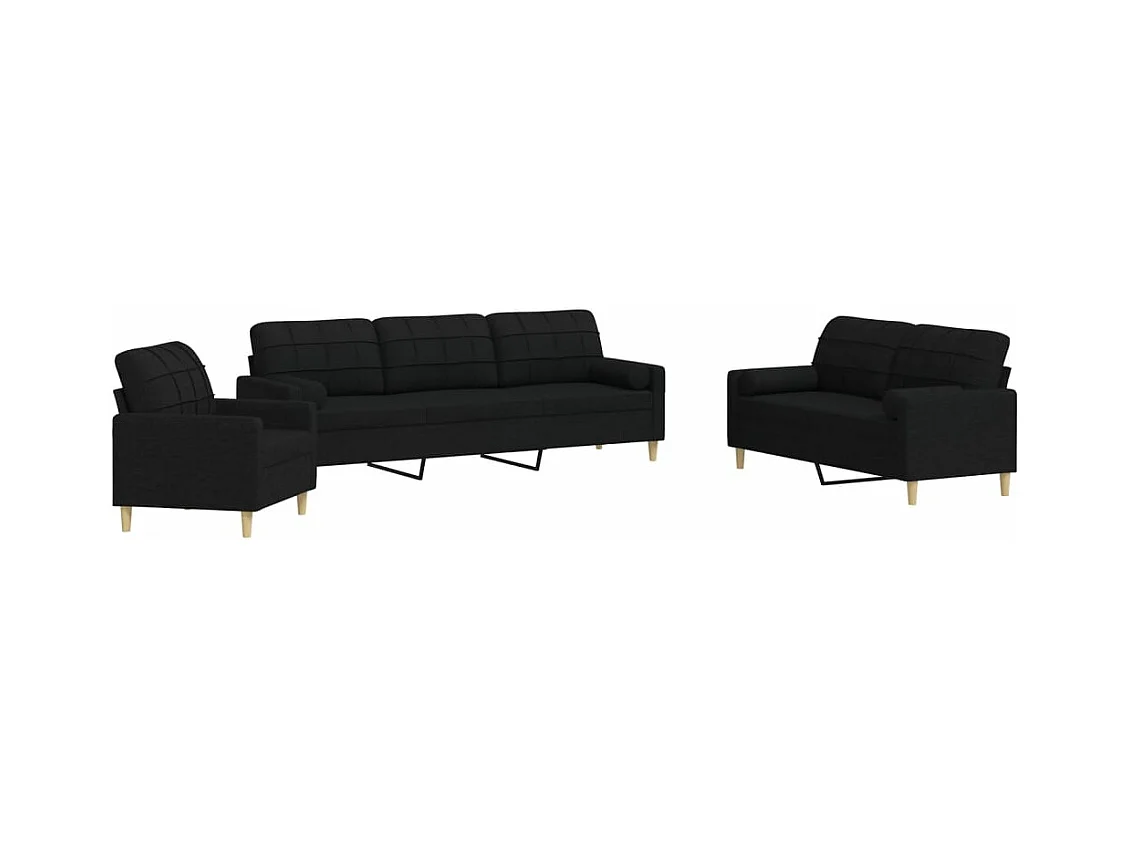 Ensemble de canapés 3 pièces avec coussins décoratifs noir tissu
