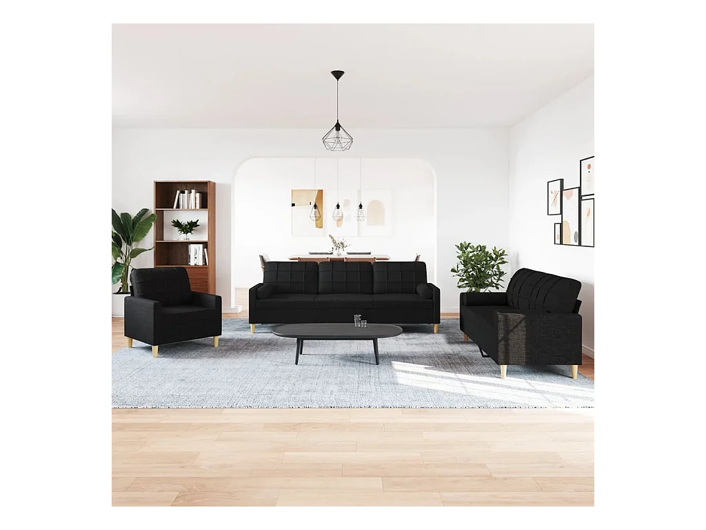 Ensemble de canapés 3 pièces avec coussins noir tissu