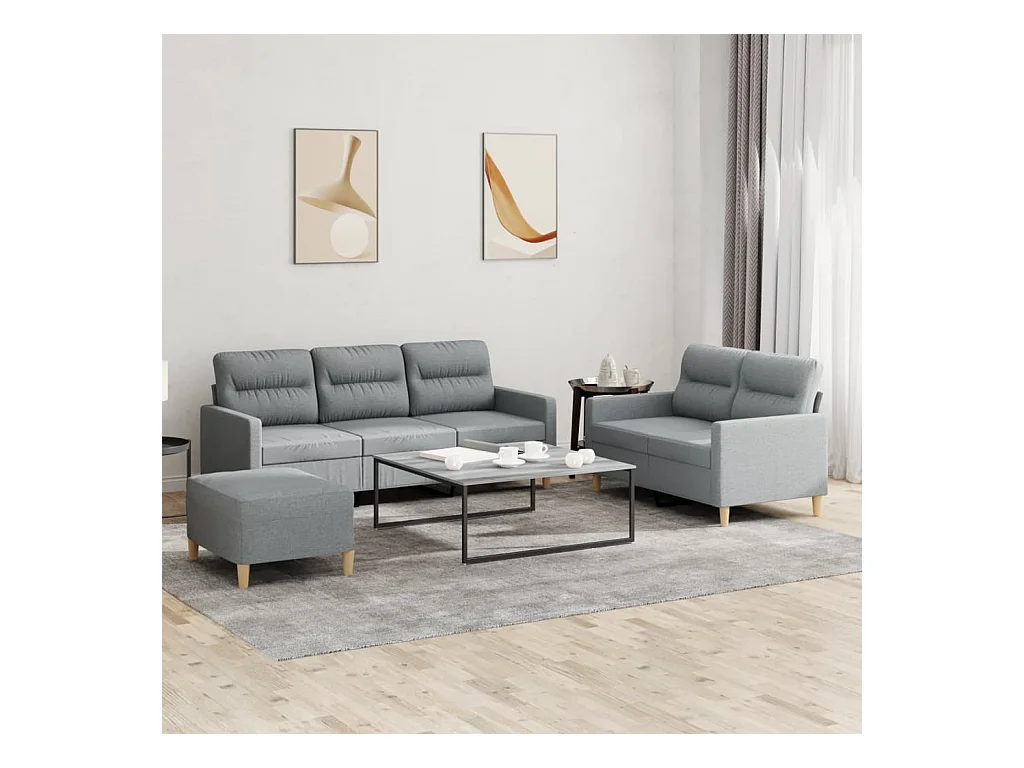 Ensemble de canapés 3 pièces coussins gris clair tissu