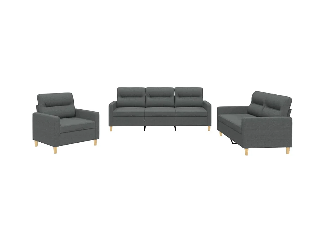 Ensemble de canapés 3 pièces coussins gris foncé tissu