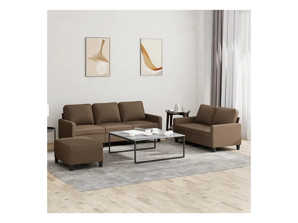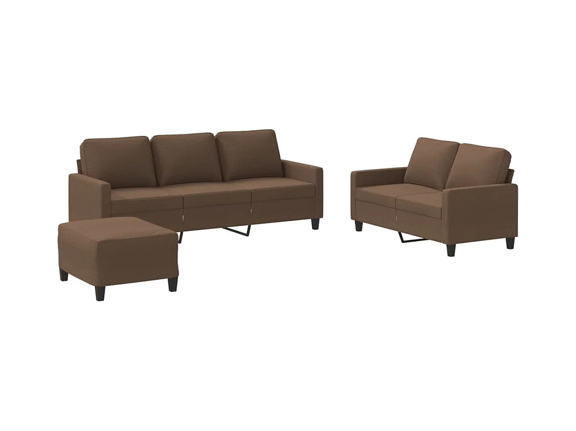 Ensemble de canapés 3 pièces avec coussins marron tissu