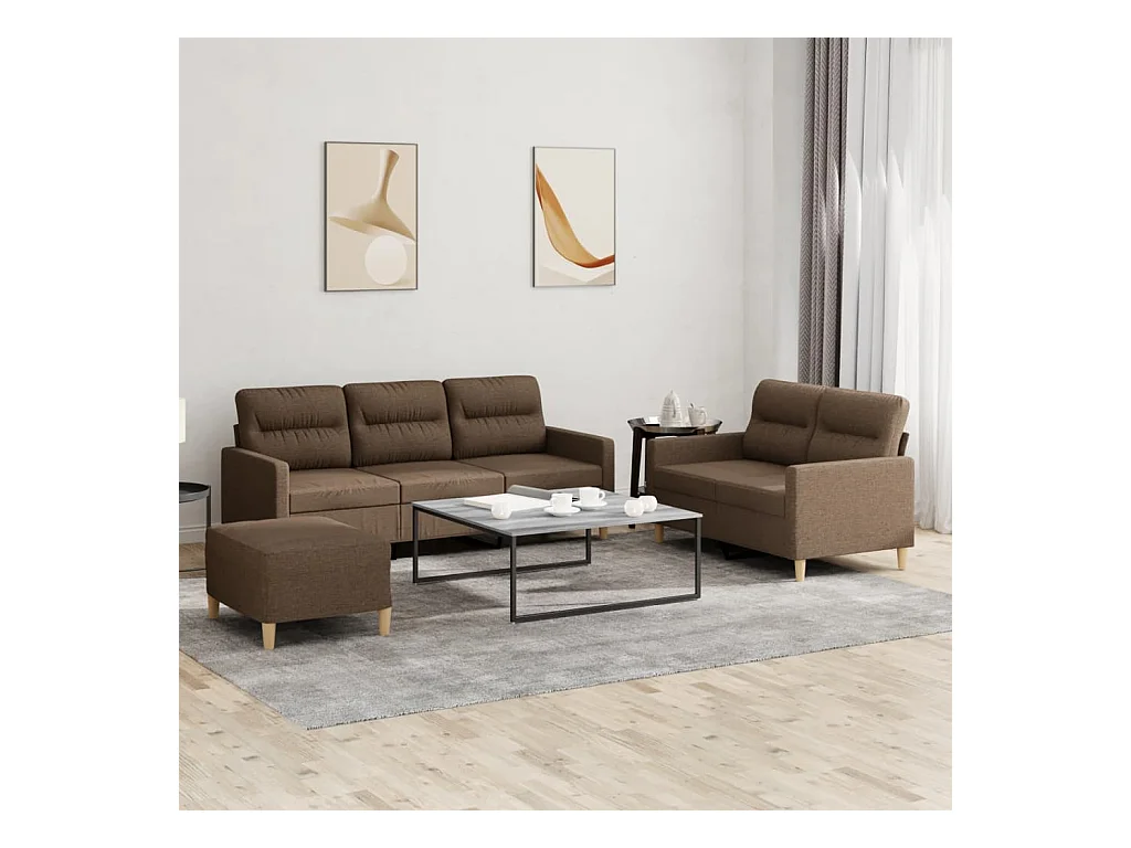 Ensemble de canapés 3 pièces avec coussins marron tissu