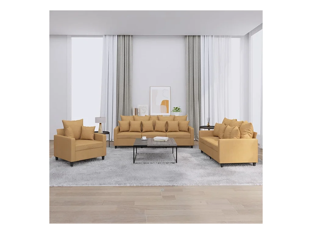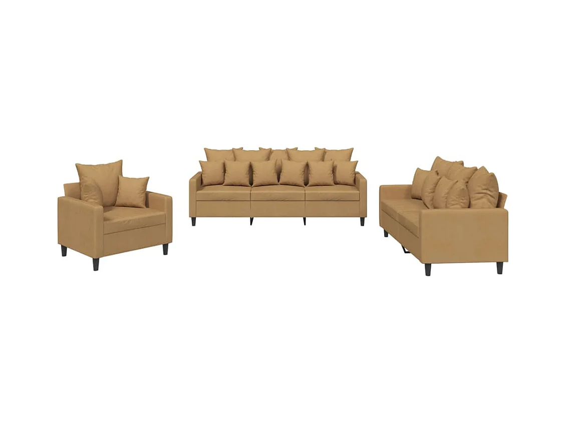 Ensemble de canapés 3 pièces avec coussins marron velours