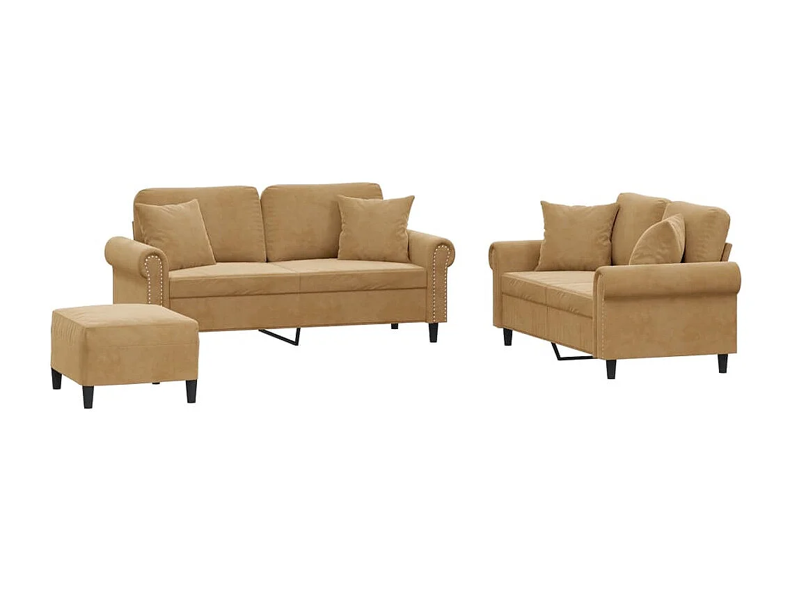 Ensemble de canapés 3 pièces avec coussins marron velours