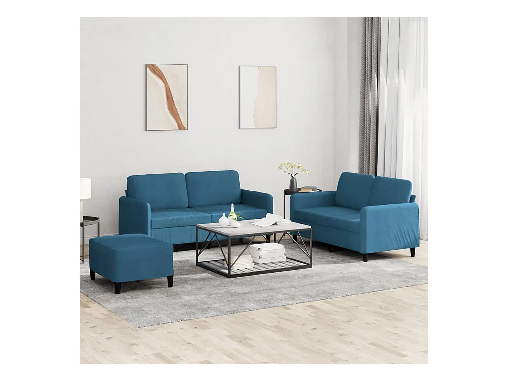 Ensemble de canapés 3 pièces avec coussins bleu velours