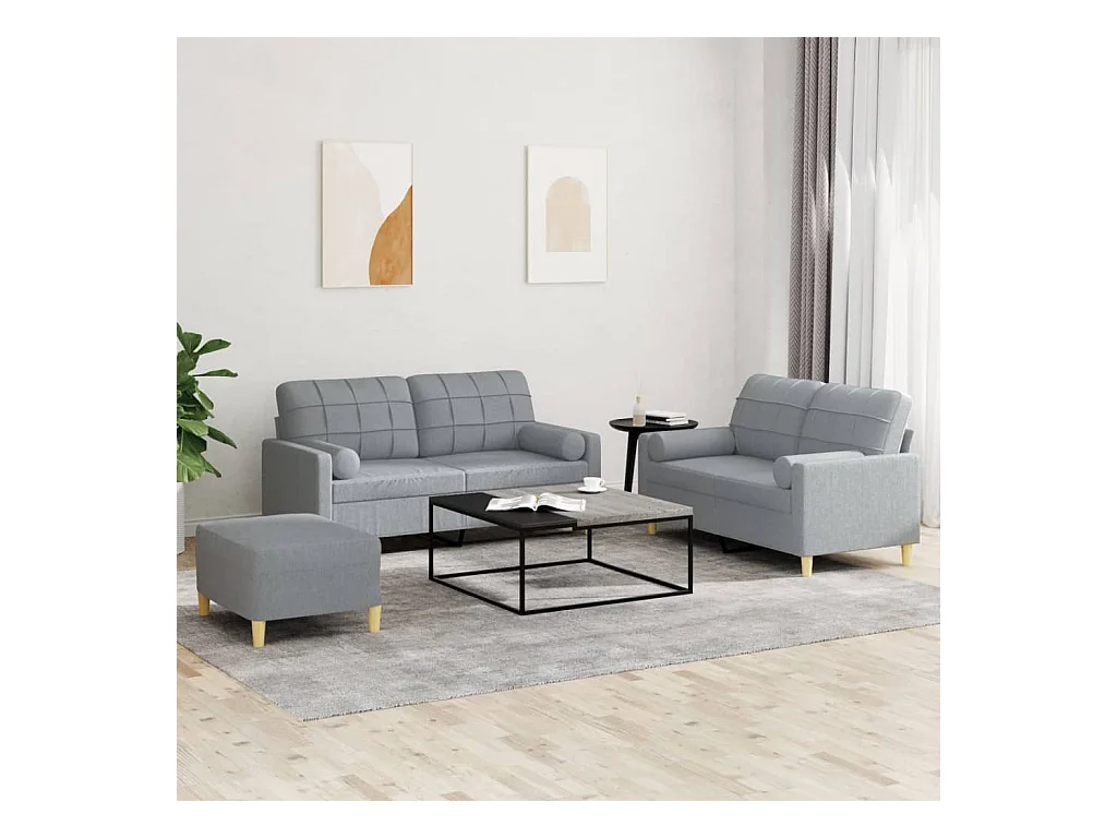 Ensemble de canapés 3 pièces coussins gris clair tissu