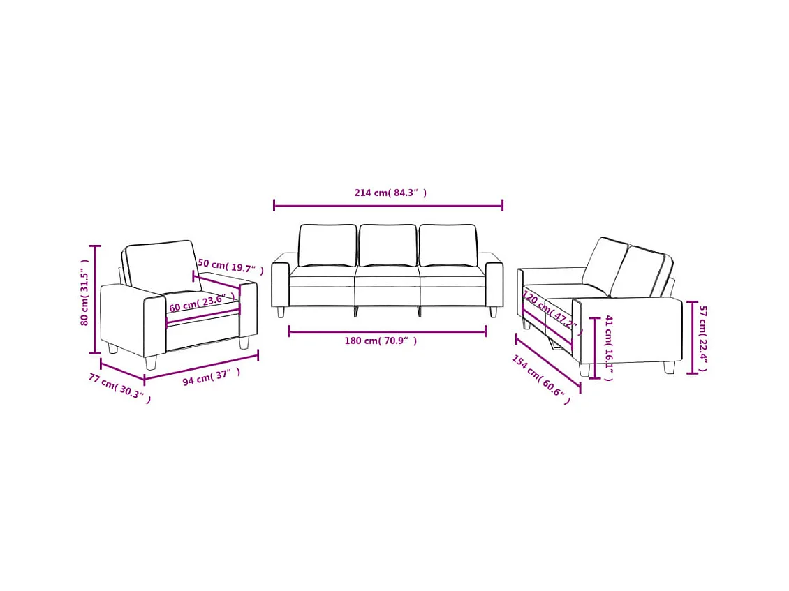 Ensemble de canapés 3 pièces avec coussins jaune clair tissu