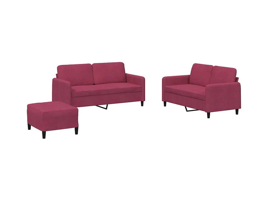 Ensemble de canapés 3 pièces avec coussins rouge bordeaux velours