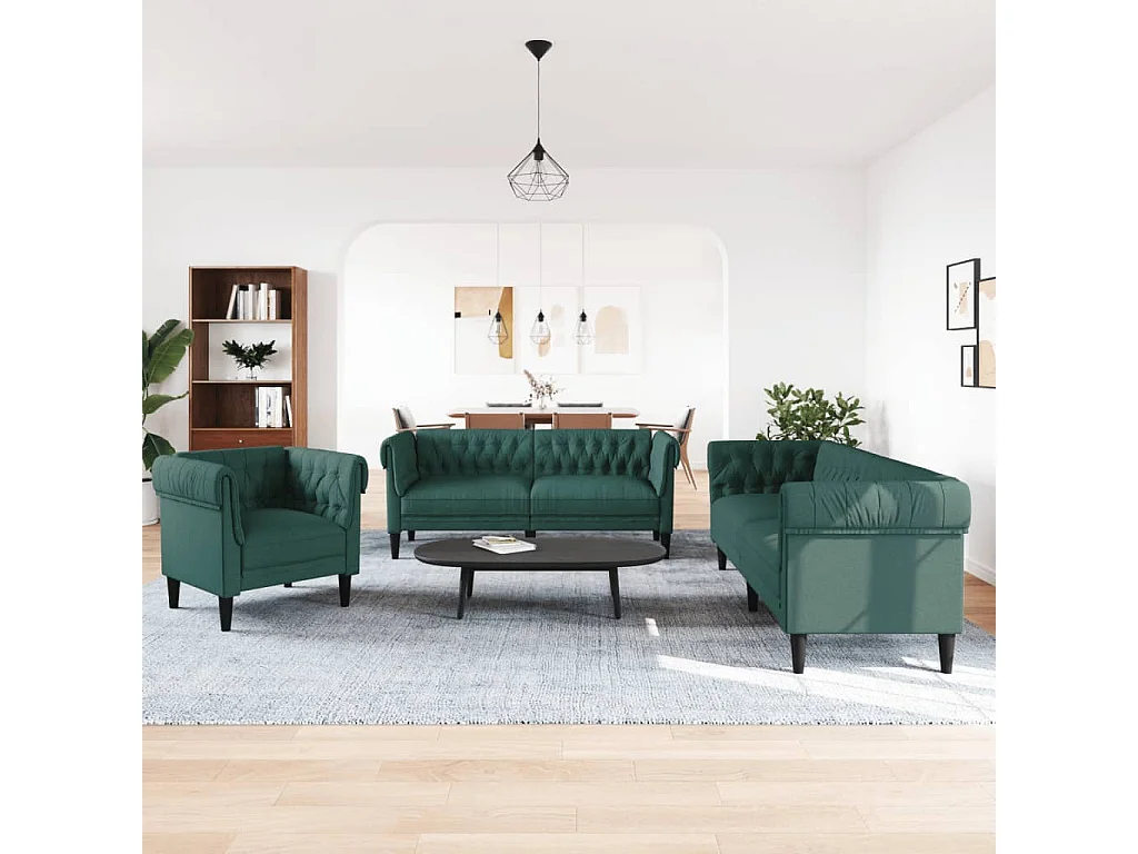 Ensemble de canapés 3 pièces vert foncé tissu