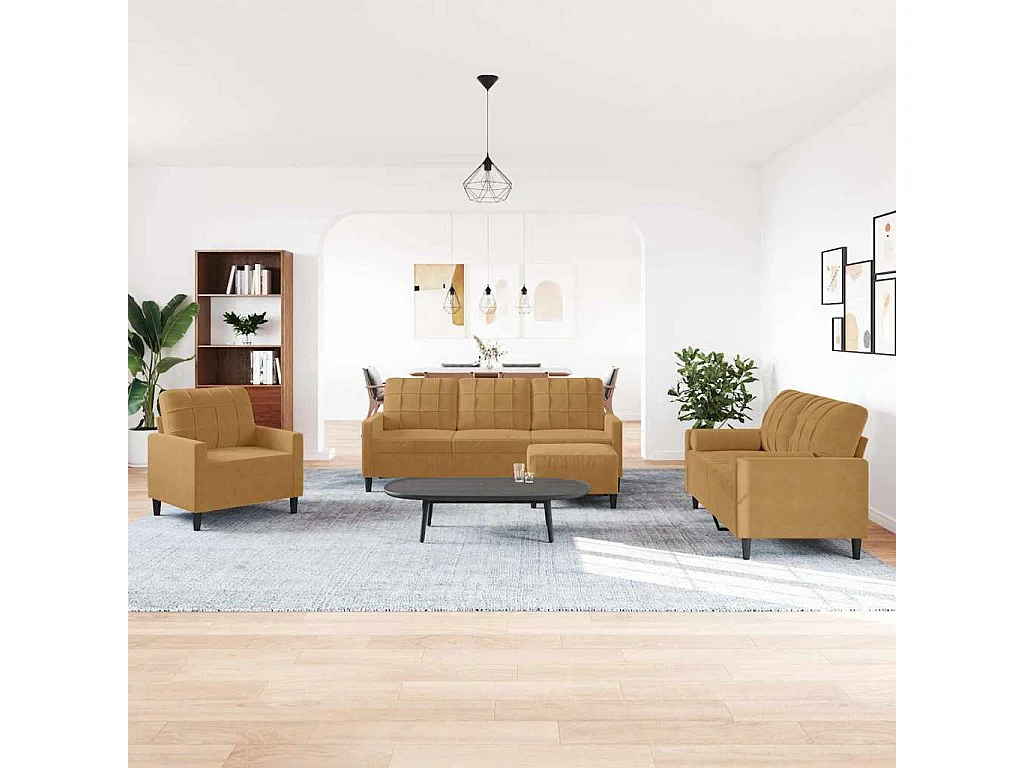 Ensemble de canapés 3 pcs avec coussins Marron Velours