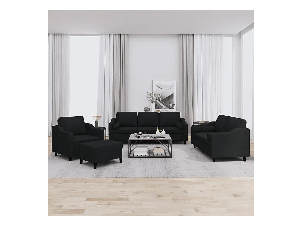 Ensemble de canapés 4 pcs avec coussins noir tissu