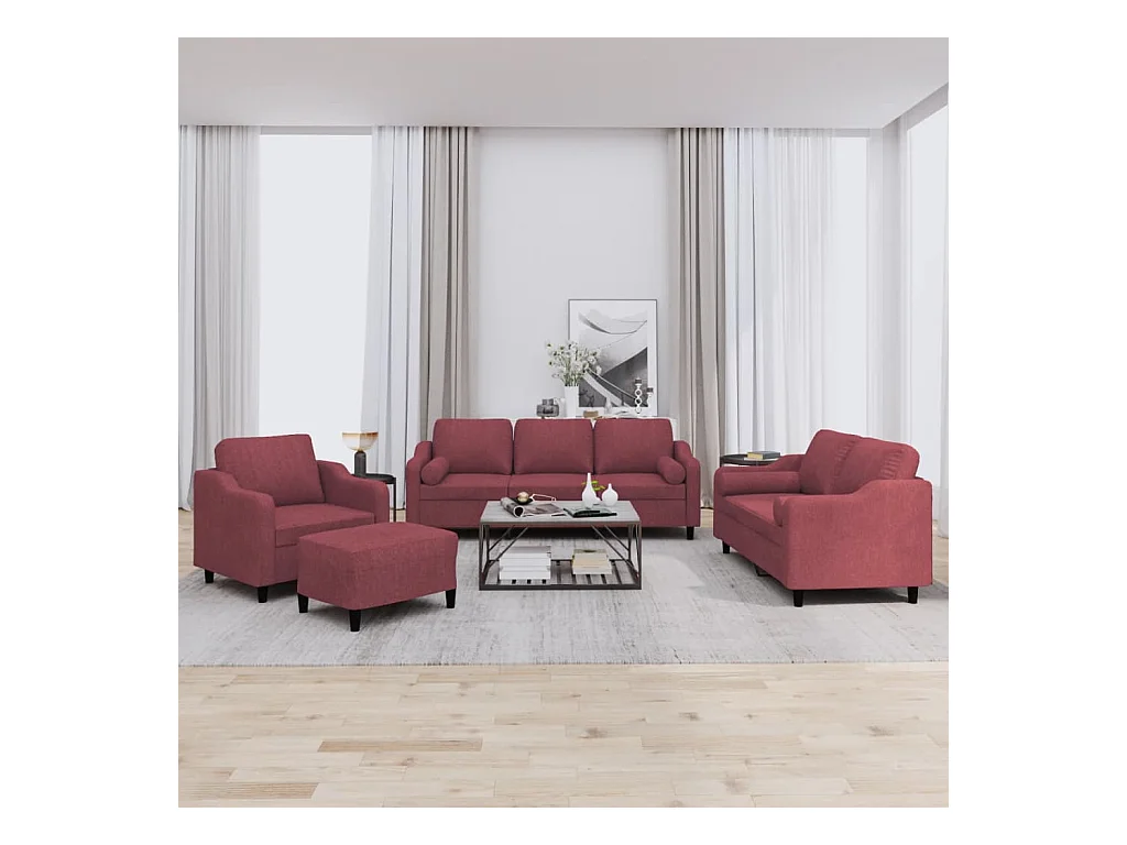 Ensemble de canapés 4 pcs avec coussins rouge bordeaux tissu