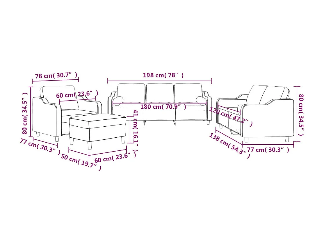 Ensemble de canapés 4 pcs avec coussins rouge bordeaux tissu