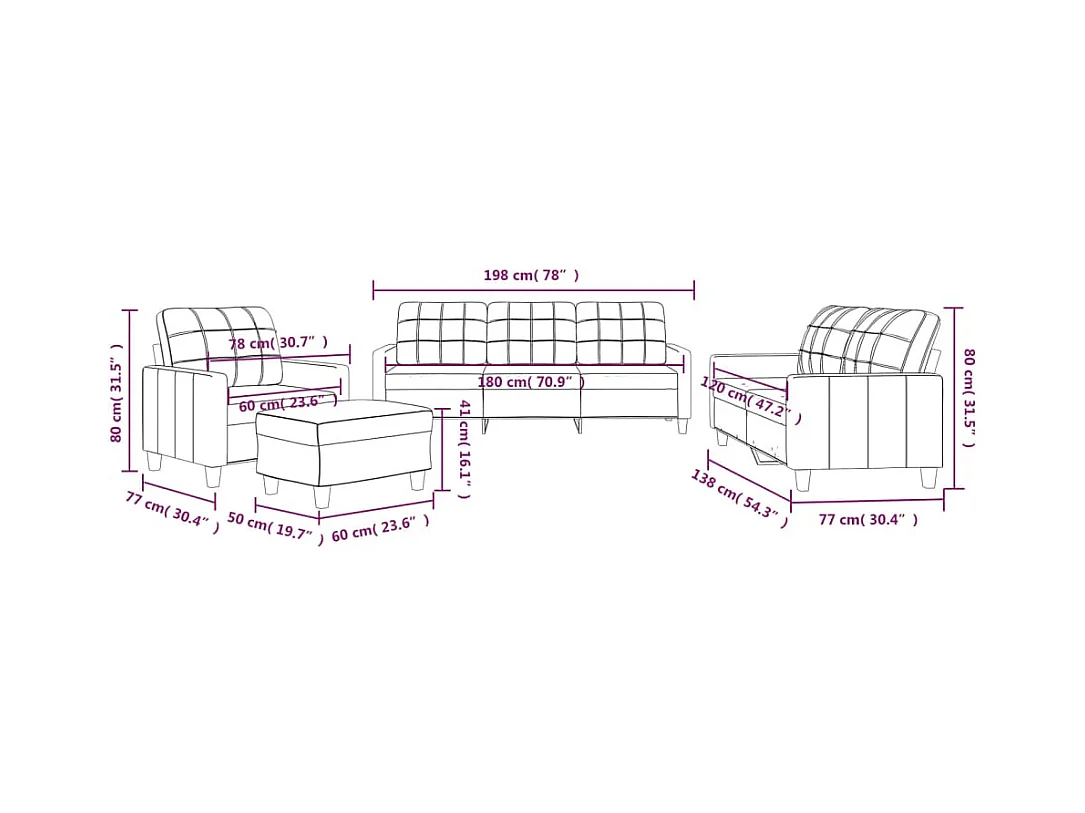 Ensemble de canapés 4 pièces avec coussins crème similicuir