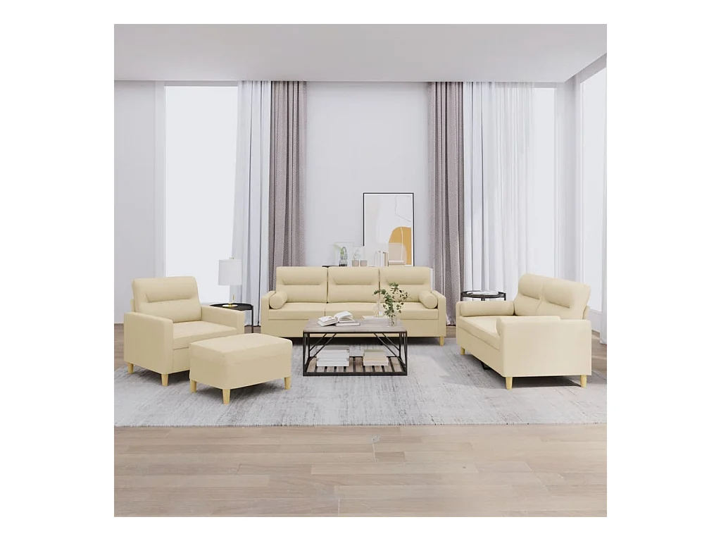 Ensemble de canapés 4 pièces avec coussins crème tissu