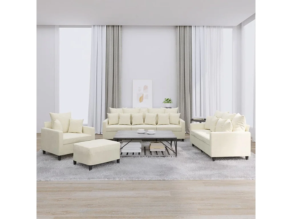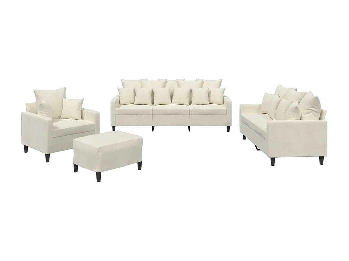 Ensemble de canapés 4 pièces avec coussins Crème Velours